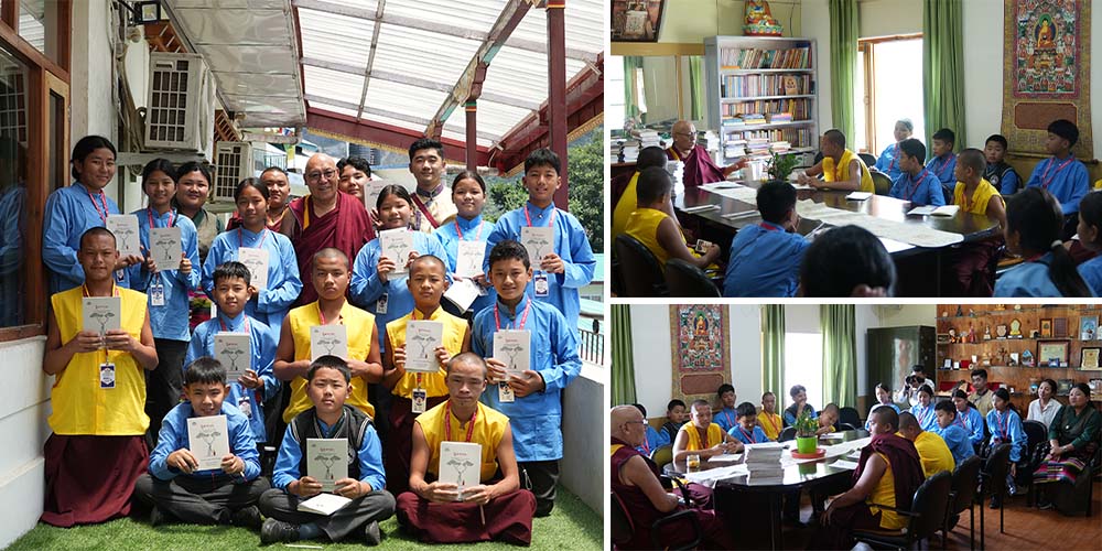 12 May 2025: A group of 15 Students and teachers from STS Chandragiri, Orissa Tibetan Settlement, visits LTWA as a part of their educational tour. LTWA Director, Ven. Geshe Lhakdor la gave a short talk on the importance of Tibetan language and culture and asked questions to the students and also answered their questions.