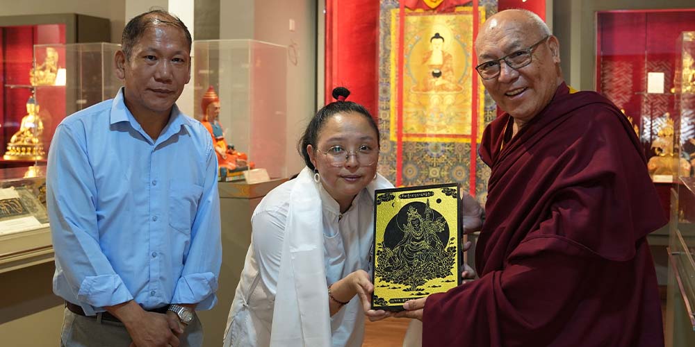 23 May 2025: Ms. Tenzin Yangchen from the Kharag Penpa family offered a black stone engraved image of Guru Rinpoche to LTWA.
