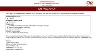 The Library of Tibetan Works & Archives invites applications from bona fide Tibetans for two contractual jobs for scanning manuscripts: Minimum Qualification✓ Class XII Minimum Contract Period✓ Two years Requirement✓ …