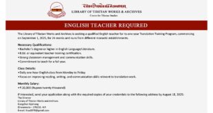 The Library of Tibetan Works and Archives is seeking a qualified English teacher for its one-year Translation Training Program, commencing on September 1, 2025, for 24 monks and nuns from …